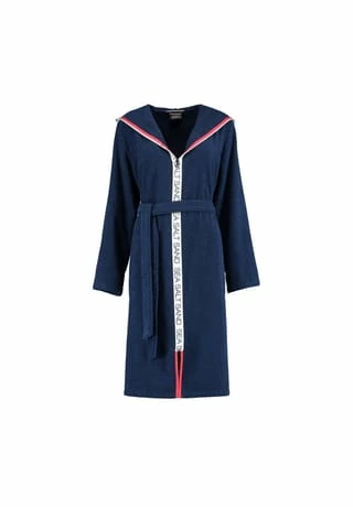 Dieser Cawö Bademantel mit Reißverschluss und Kapuze im maritimen Look bietet hochwertige Walkfrottier-Qualität aus 100% Baumwolle. Seine attraktive Optik und der SEA SALT SAND Schriftzug entlang der Bordüre machen diesen Bademantel für Damen zu etwas ganz Besonderem.Cawö Bademantel Sea Salt Sand – Wohlfühlen auf die maritime ArtCawö Damen Bademäntel – Größentabelle: 36/38 – S40/42 – M44/46 – L48/50 – XL