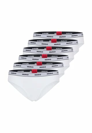 Einfarbige Slips für Damen von der Marke HUGO. Im praktischen 6er Pack. Aus der Serie Brief Stripe. Hochwertige Verarbeitung.