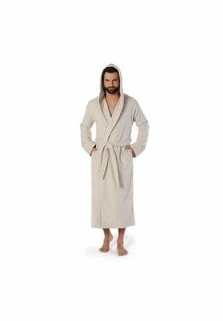 Kuscheliger und nachhaltiger Bademantel mit Kapuze, Eingrifftaschen und Bindegürtel